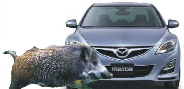2. Vozilo Mazda se kretalo i u jednom momentu došlo je do naleta vozila Mazda i to prednjom desnom stranom na divlju svinju.